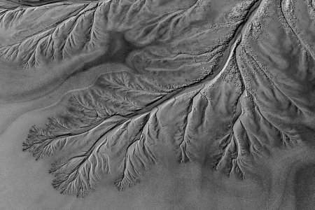 This image was converted into black and white to emphasise the pattern the water at the end of the tributary had created.  It reminds me of a coral fan.  The earth veins.